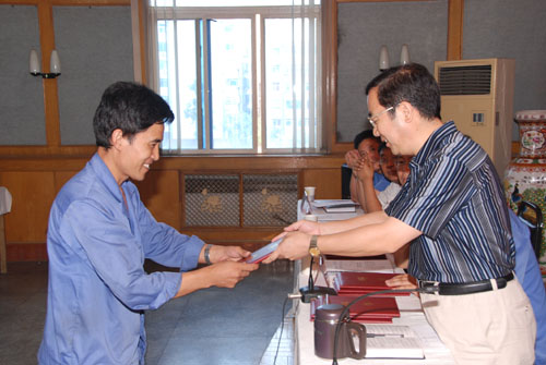 金結(jié)廠廠長王超生、重機(jī)廠廠長劉普戰(zhàn)代表先進(jìn)分廠發(fā)言,分別介紹了其分廠克服困難,勇奪先進(jìn)的經(jīng)驗(yàn)。機(jī)電廠副廠長劉貴生介紹分廠產(chǎn)值由小到大,勇創(chuàng)市場的經(jīng)驗(yàn)。重機(jī)廠鉗工郭文海代表新任“首席員工”發(fā)言,表示要繼續(xù)努力,刻苦學(xué)習(xí)現(xiàn)代科技知識和先進(jìn)技能,崗位成才,爭創(chuàng)一流,為搞好工作提供堅(jiān)定的技術(shù)保證。