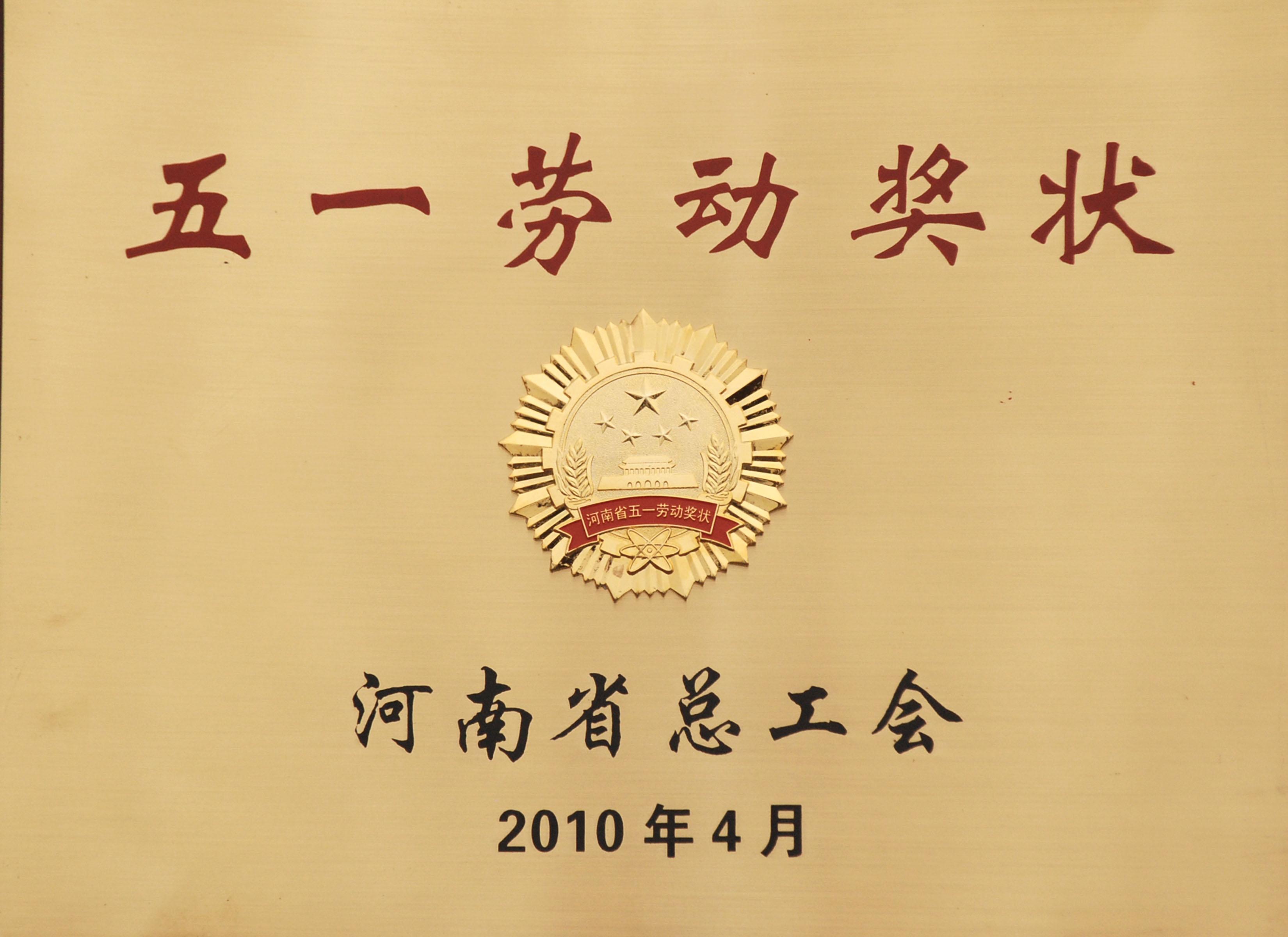 公司獲河南省“五一”勞動獎(jiǎng)狀