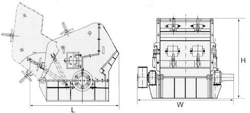PF系列反擊式破碎機(jī)外形尺寸圖: